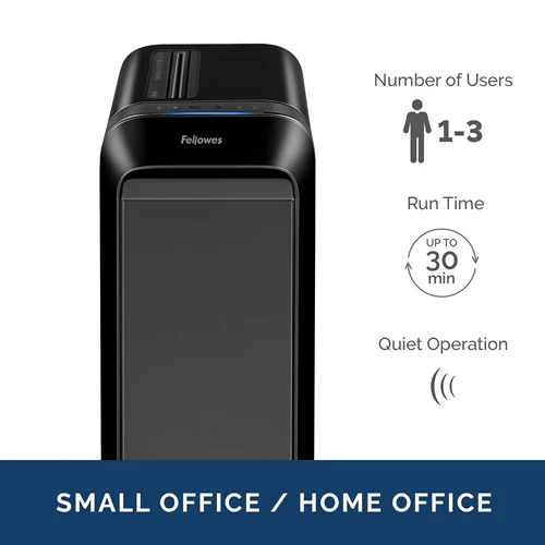 Fellowes LX190 is a 100% Jam Proof Shredder for a seamless shredding experience. SafeSense technology terminates operations when hands come into contact with the paper feed. A large 9-gallon bin with a Bin Full Indicator stores waste materials and monitors waste levels.